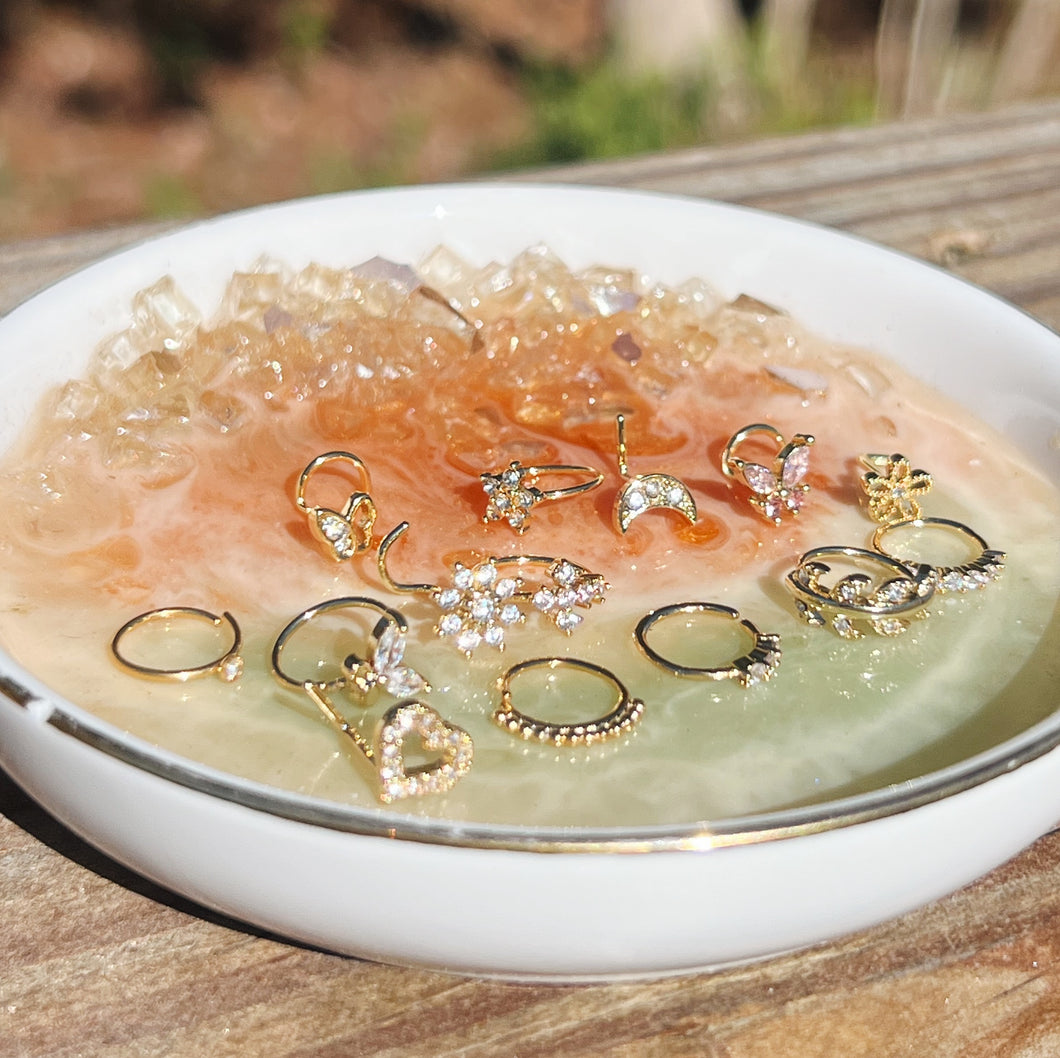 Care Tips for Metals | Avoid contact with perfumes, body oils, and other chemicals, including household cleaners. Never use chemical jewelry cleaners as these will do more harm than good. For light cleaning, gently polish with a soft, lint-free cloth to avoid scratching. Store it in a cool dry place.